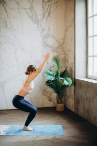 Chair Pose (Utkatāsana) — Engages core and leg muscles to support a neutral spine.