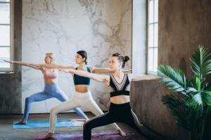 Warrior II Pose (Vīrabhadrāsana II) — Strengthens glutes and thighs, improving pelvic balance.